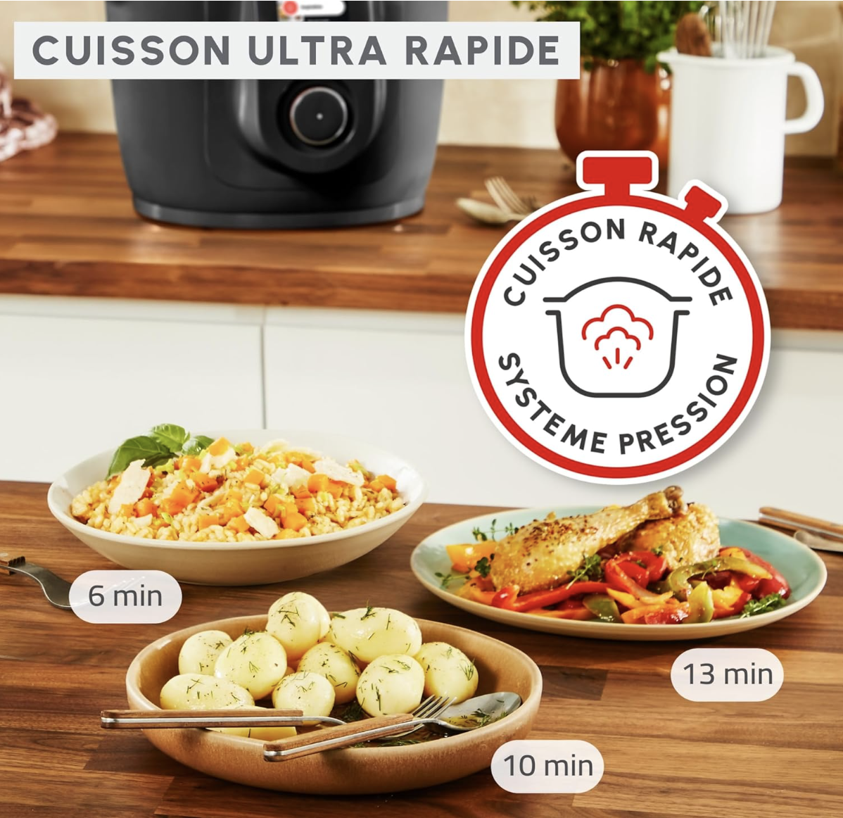 - GAIN DE TEMPS ET D’ENERGIE : mode de cuisson sous pression pour cuire vos plats jusqu’à 5 fois plus vite* et économiser jusqu’à 80 % d’énergie*. Préparez des repas complets en une seule cuisson grâce à la grille 2-en-1 qui permet de cuire sur 2 étages en même temps (*par rapport à un mode de cuisson classique / Test réalisé en 2022 avec des pommes de terre)